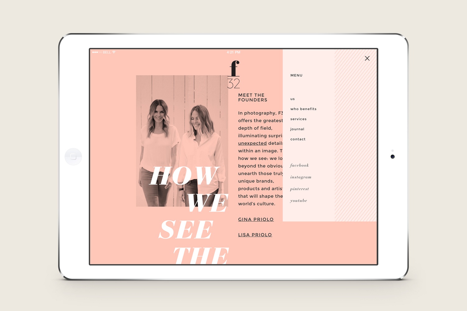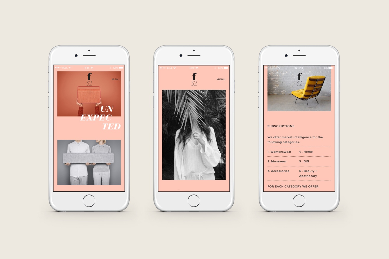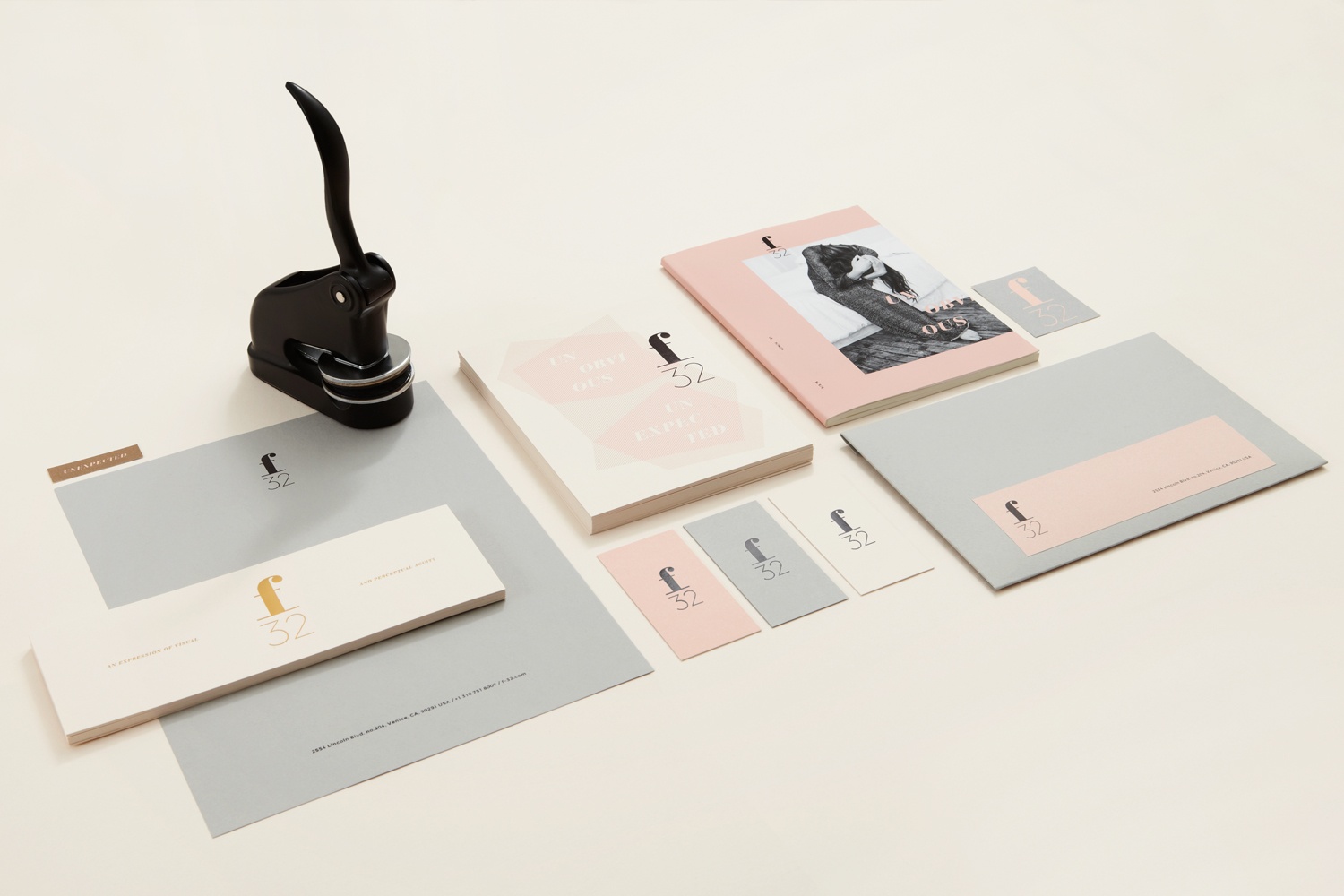 F32是一家美國(guó)時(shí)尚觀察公司,由吉娜(Gina)和麗莎·普里奧洛(Lisa Priolo)創(chuàng)立,在洛杉磯設(shè)有辦事處,致力于尋找和支持那些將繼續(xù)塑造全球文化的藝術(shù)家和品牌。F32與平面設(shè)計(jì)工作室Blok Design合作,更好地表達(dá)了這一愿景,以及他們的精致和高度當(dāng)代的審美敏感性。這是通過(guò)在名片、貼紙、文具和趨勢(shì)報(bào)告的印刷中命名和視覺(jué)識(shí)別,并通過(guò)一個(gè)新的響應(yīng)網(wǎng)站在線實(shí)現(xiàn)的。