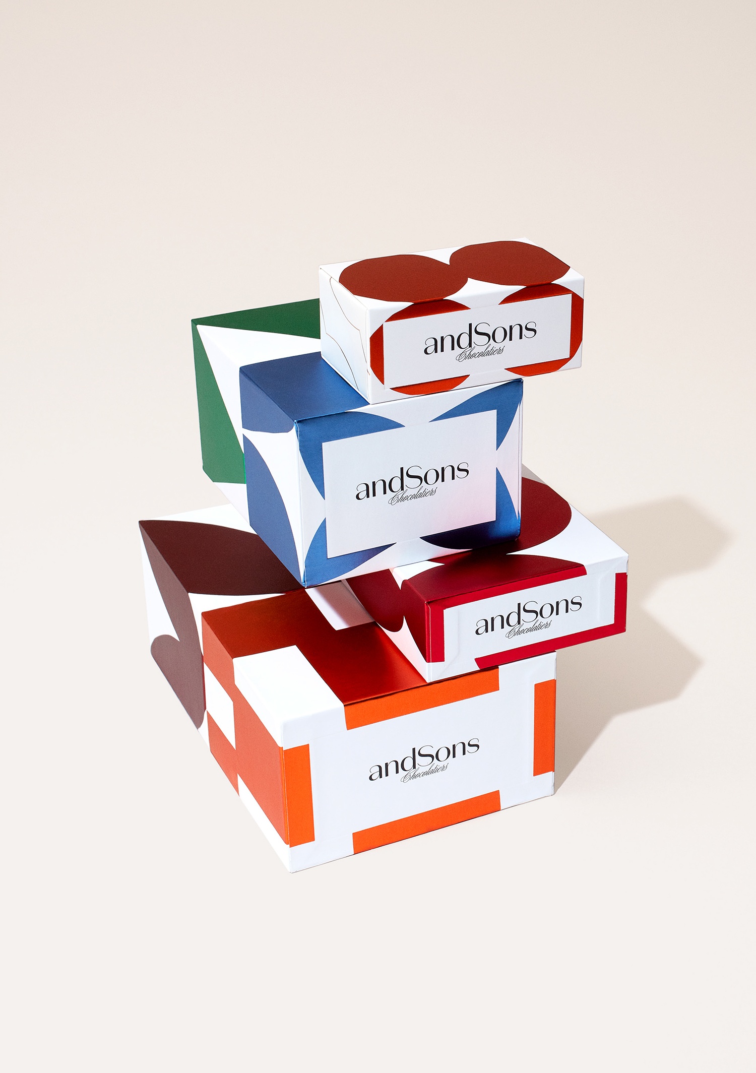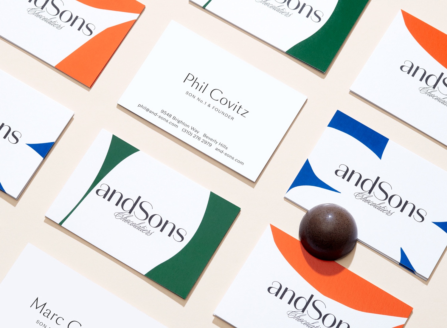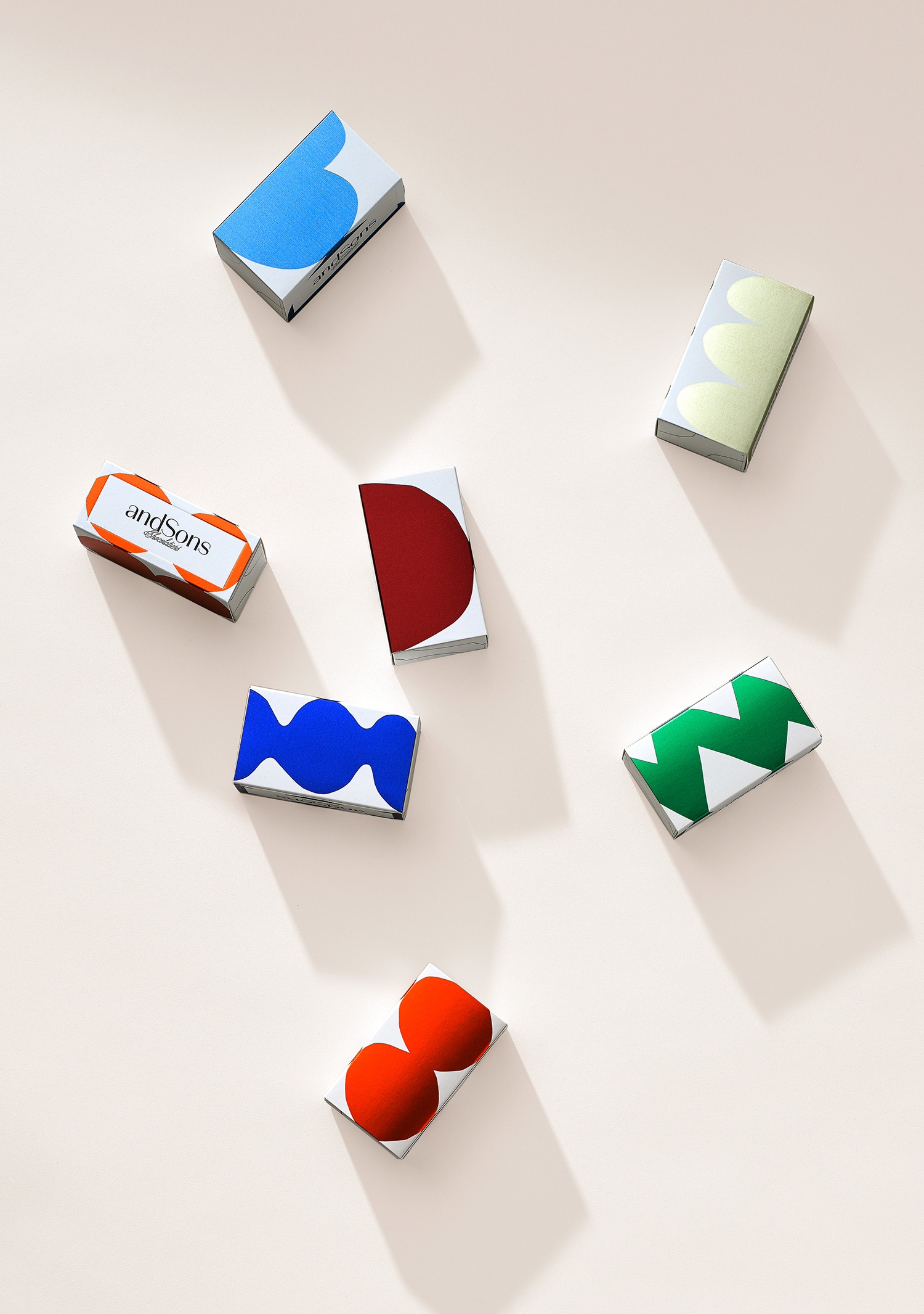 andSons是第二代巧克力零售商,由馬克和菲爾·科維茲經營,這兩個兄弟從母親那里學到了一切有關精制巧克力的知識。十大糕點師克里斯·哈維與兄弟們一同前進,力求為手工巧克力世界提供新的東西,而桑斯則在他們傳統的歐洲傳統和他們所居住的洛杉磯的當代創造力之間建立了界限。考慮到這一定位,Sons委托包裝設公司創造標志性的圖形標識和包裝設計,以捕捉創新精神,這種創新精神源于精致而奢華的傳統,同時也充滿了娛樂性和令人驚訝。這些意圖交織在一起,并通過簡單但優雅的標志,大膽的彩色圖案和白色襯托以及可互換的袖子將其表達出來。